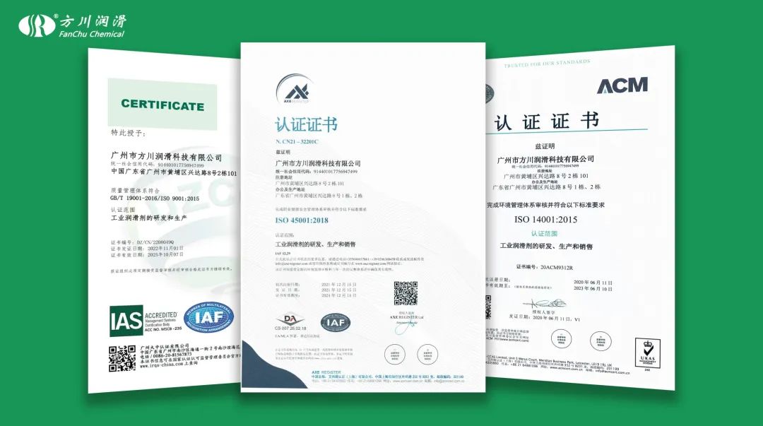 方川已獲得 ISO三體系認證,包含:ISO9001質量管理體系、ISO14001環(huán)境管理體系和ISO45001職業(yè)健康安全管理體系。