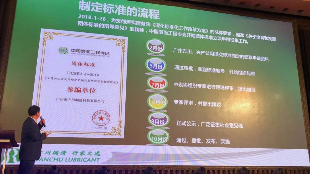 今年我們方川發(fā)布了兩項有關切削液的團體標準,分別是《金屬加工液使用維護更換及其所用設備操作規(guī)范》和《無硫磷氯元素添加劑的切削油》。今年協會年會由我們李茂生博士來解讀標準。