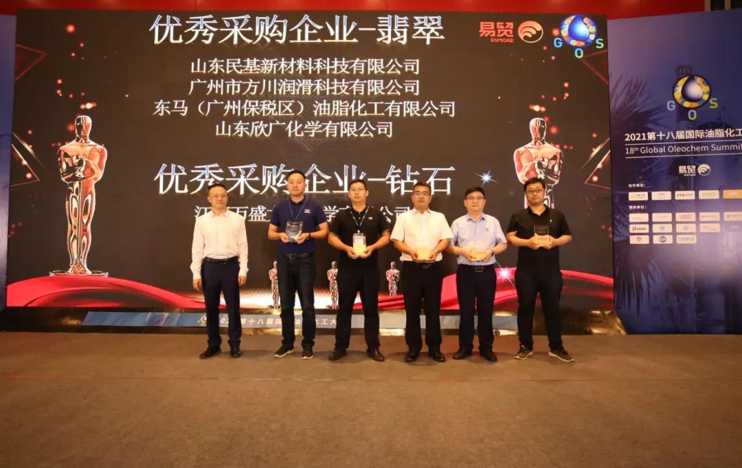 2021年7月14日-16日,(第十八屆)國(guó)際油脂化工大會(huì)在青島召開(kāi)。此次大會(huì)中,方川潤(rùn)滑總經(jīng)理徐立庶先生以最高票數(shù)榮獲“2021油脂化工風(fēng)云人物獎(jiǎng)”,方川潤(rùn)滑榮獲“優(yōu)秀采購(gòu)企業(yè)翡翠獎(jiǎng)”。