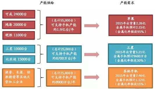 2016各品牌金屬外殼手機(jī)新增機(jī)床需求預(yù)測(cè)
